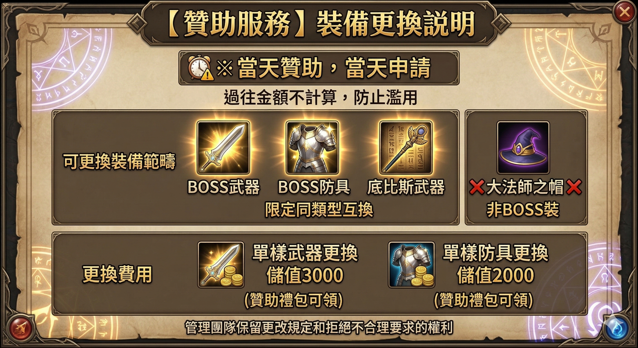 BOSS防具互換,BOSS武器互換,底比斯武器互換,大法師之帽不屬於BOSS裝。